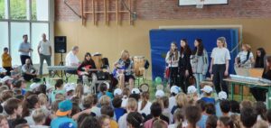Alle Instrumente werden von den Schüler*innen selbst gespielt. Unterstützung und Begleitung erhalten sie dabei von Herrn Arfert, Frau Scharnau und Frau Witt. So verbindet die Band Musizieren mit Teamgeist und leistet einen wichtigen Beitrag zur kulturellen Vielfalt unserer Schule – ganz im Sinne unseres Mottos: „Miteinander stark!“